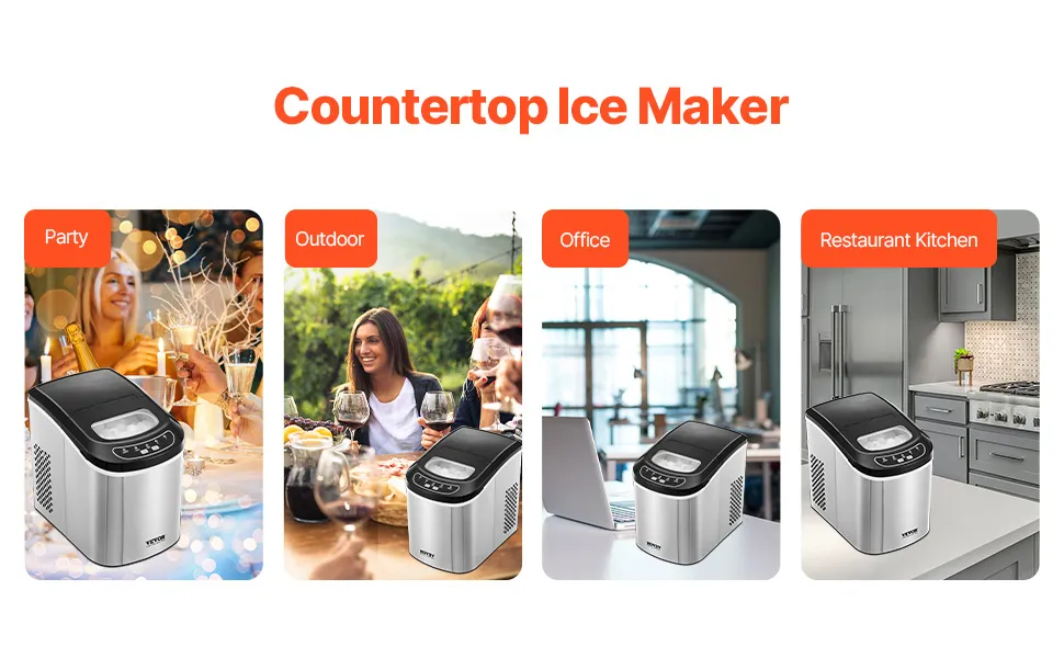 The ice maker machine is portable and easy to carry, making it ideal for parties, offices, restaurants kitchens, and more.