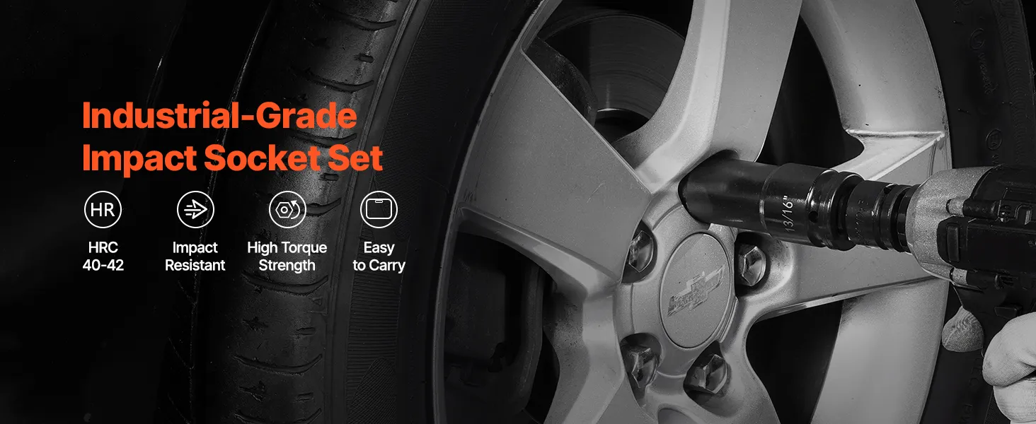 A complete collection of SAE impact sockets is a must-have for automotive and heavy equipment work. They cover sizes from 7/8 inches to 2 inches. This ensures you have the right tool for any bolt or nut. The SAE sizes are commonly used in American vehicles and machinery. Having a comprehensive set ensures that you are prepared for anything. These sockets are made from durable CR-V material. It ensures they can handle high torque and frequent use. This set is ideally suited for both home and professional use. It is a practical and reliable addition to any toolkit.