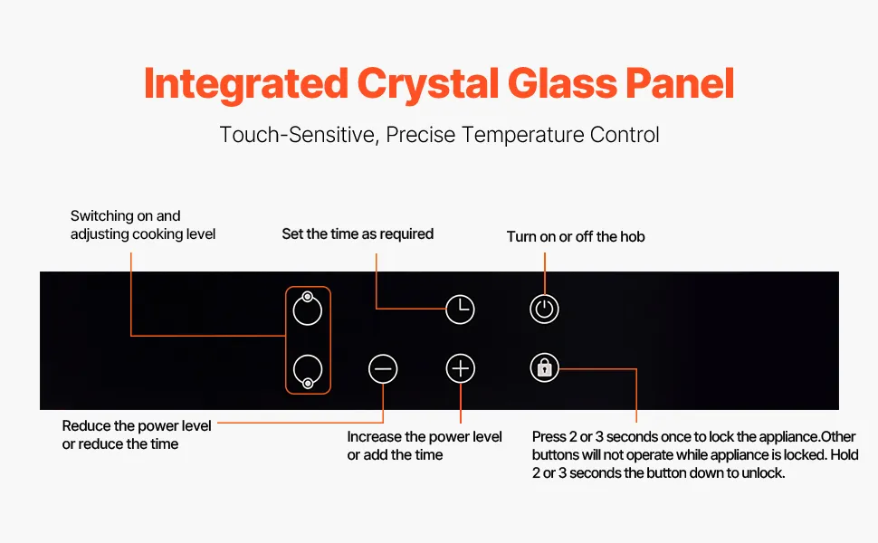 Precise Temperature Control: The touch-sensitive, high-sensitivity panel allows for easy adjustment to your desired heat level with a simple touch and slide. Each zone can independently control its temperature, and the timer and pause functions further enhance cooking flexibility.
