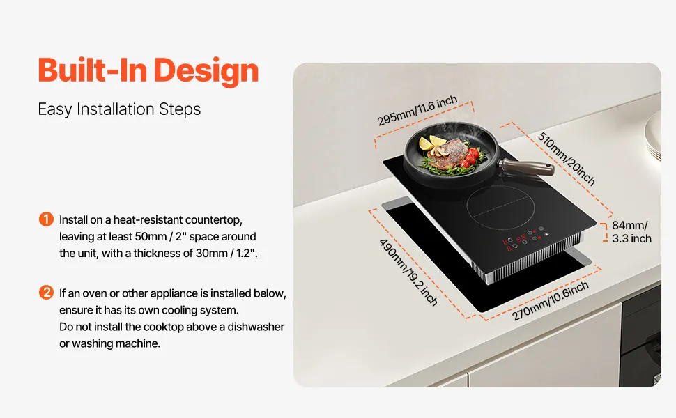 This electric stove top offers dual functionality to meet various needs. Its easy installation requires minimal modification to your kitchen cabinets and countertops, saving valuable kitchen space.