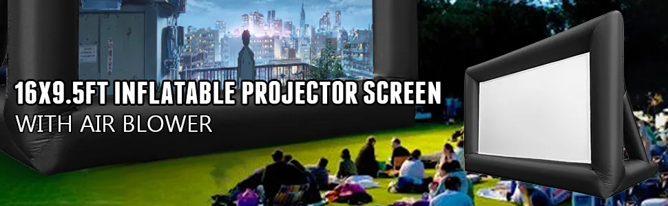 • 【GIANT DISPLAY AREA】- Size: 16x7.2x9.5ft(LxWxH). Create a full-size, white, widescreen. Inflatable screen outdoor can be connected to any projector for a premium outdoor cinema & theater watching experience.