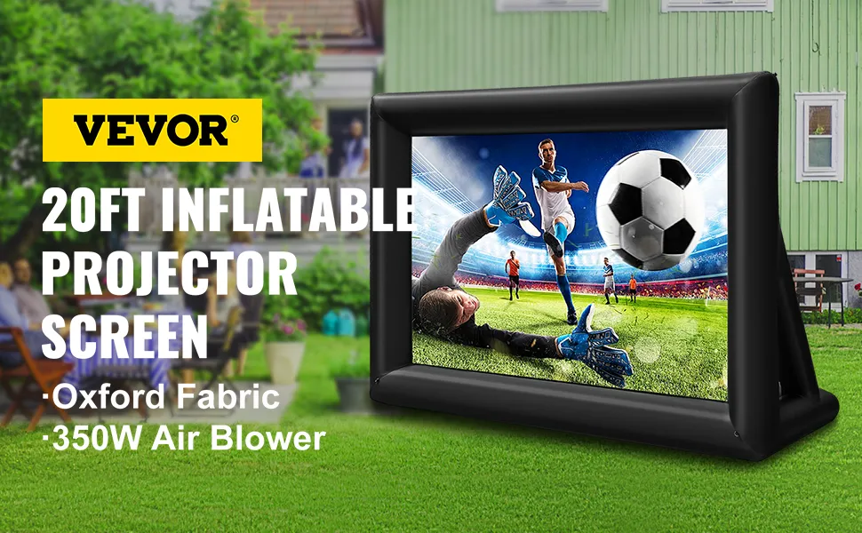 Our movie screen is designed to help you get more fun at home parties and outdoor BBQ. Self-blow quickly within one minute when plugged in. It can create a full-size widescreen that displays favorite movies, TV shows, videos, or playing games. A happy atmosphere can be made, while friends, kids, colleagues, or neighbors will have a good time.