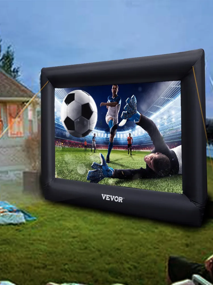 Our movie screen is designed to help you get more fun at home parties and outdoor BBQ. Self-blow quickly within 2 minutes when plugged in. It can create a full-size widescreen that displays favorite movies, TV shows, videos, or playing games. A happy atmosphere can be made, while friends, kids, colleagues, or neighbors will have a good time.