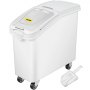 Keep ingredients close at hand with this VEVOR's white mobile ingredient storage bin with a lid. This shelf ingredient bin is made of food-grade PP and PET material, built to withstand everyday use in commercial kitchens. The clear lid allows your ingredients to be identified quickly and sealed sealed tightly to maintain consistent freshness. Suitable for storing rice, flour, grain, and other dry goods. They are widely used in both commercial kitchens and homes. Become the master chef you've always wanted to be and organize your flavors to fit your preferences.