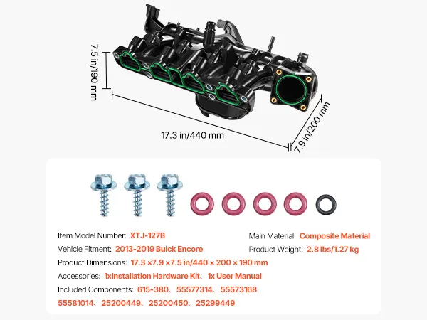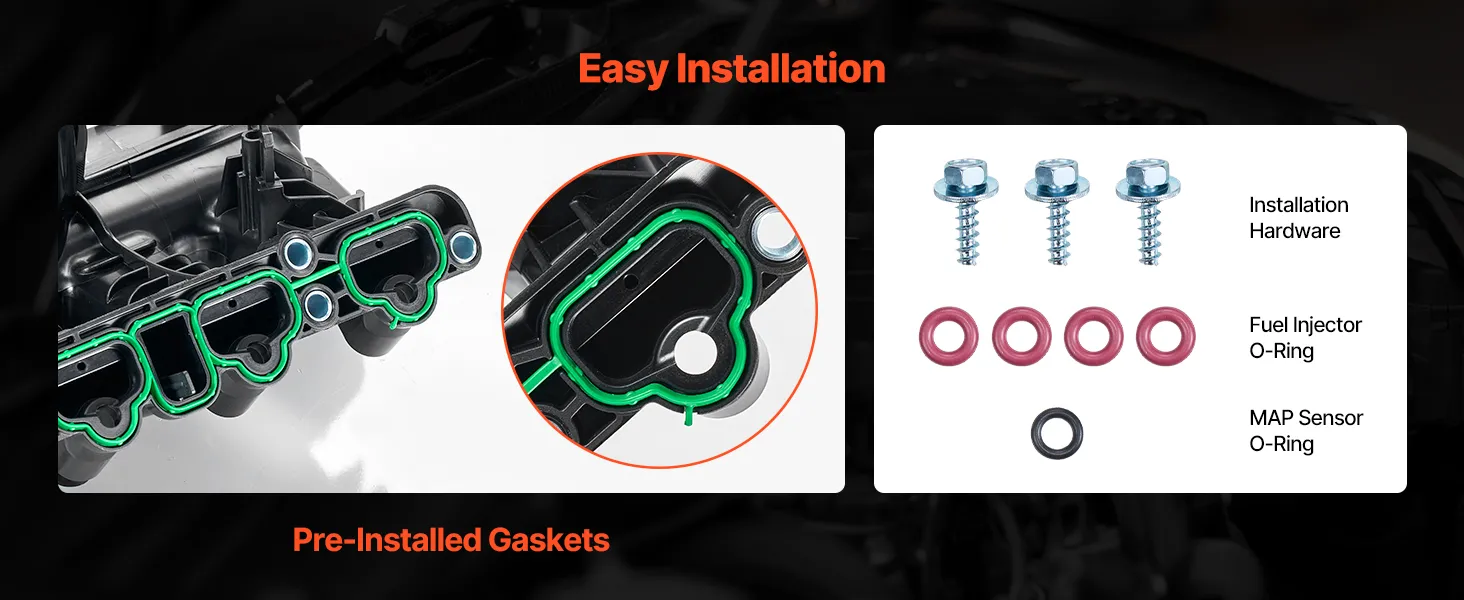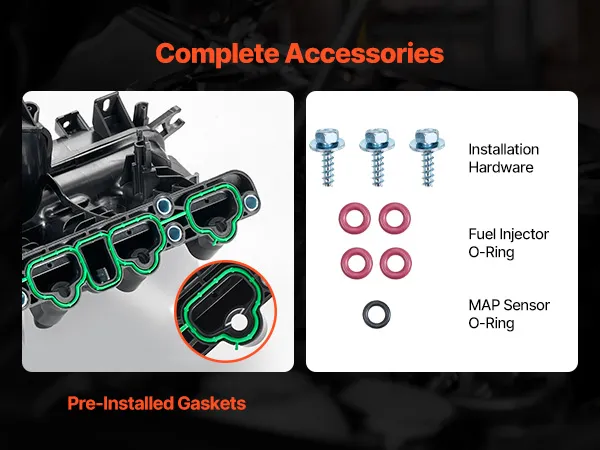 All-in-One Package: Our air intake manifold comes with pre-installed intake gaskets—no need to install them yourself. It includes new manifold O-rings to replace worn seals in time and matching bolts to save you the hassle of finding the right ones