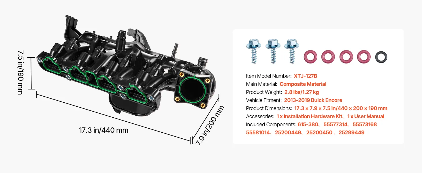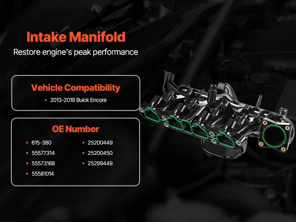 Vehicle-Specific Fit: Our intake manifold fits 2013–2019 Buick Encore. It is designed to match your original intake manifold for quick, direct replacement on compact SUVs