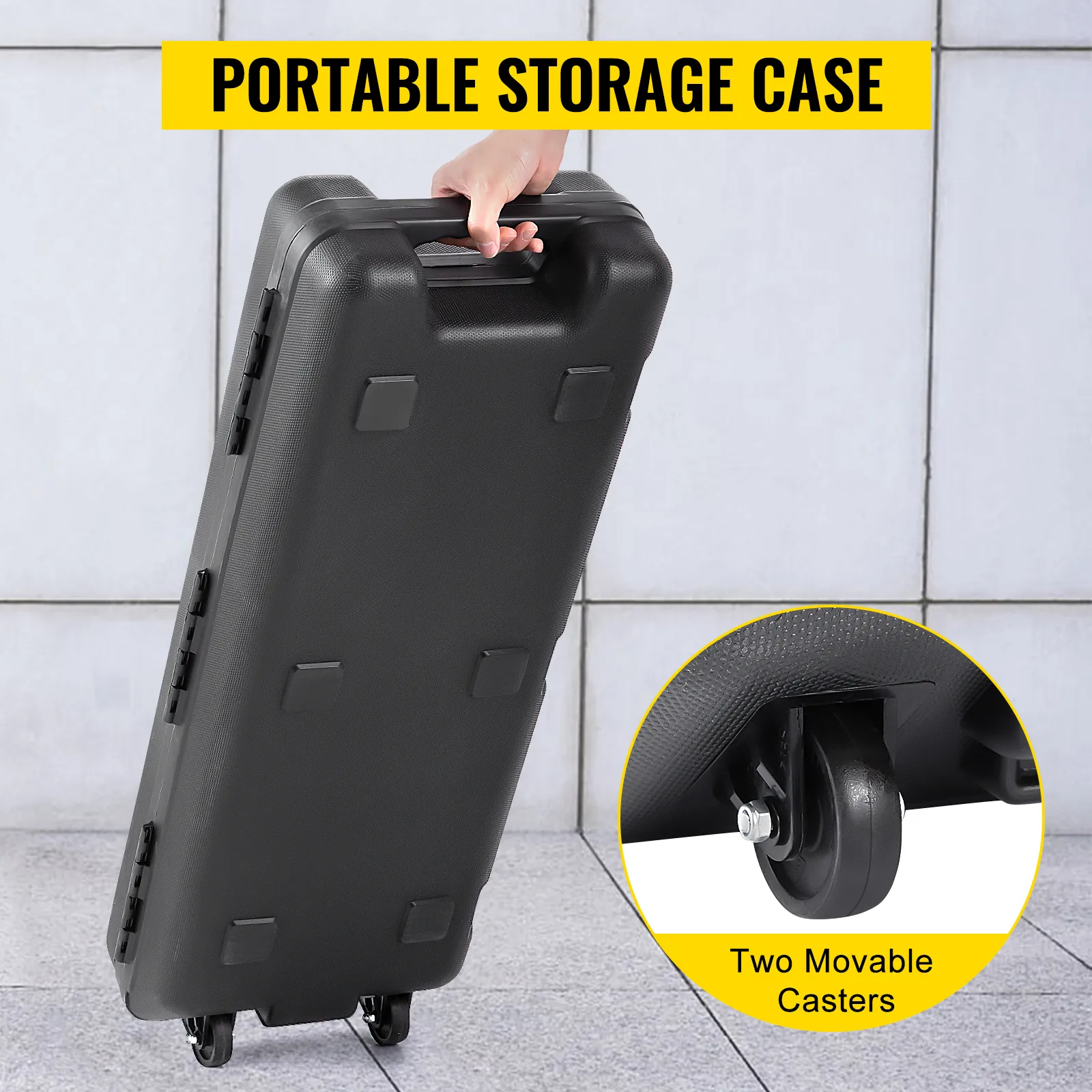 The package comes with a carrying case that measures 35" x 7.7" x 18.6" with additional accessories. It features two swivel casters, allowing convenient transportation easy storage.