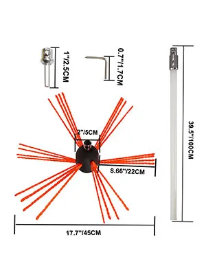 This brush head is made of high-density & reinforced nylon rubber composite material, durable and solid. The bristles feature a unique sharp-edged rectangular shape, makes the sweeping more efficient. It will not damage the flue even in a high-speed revolution.