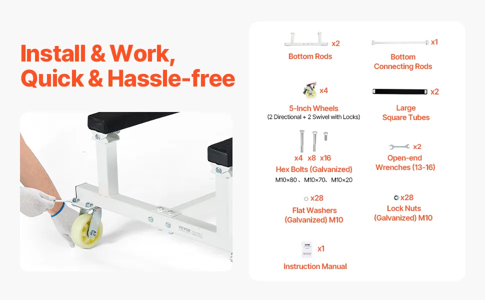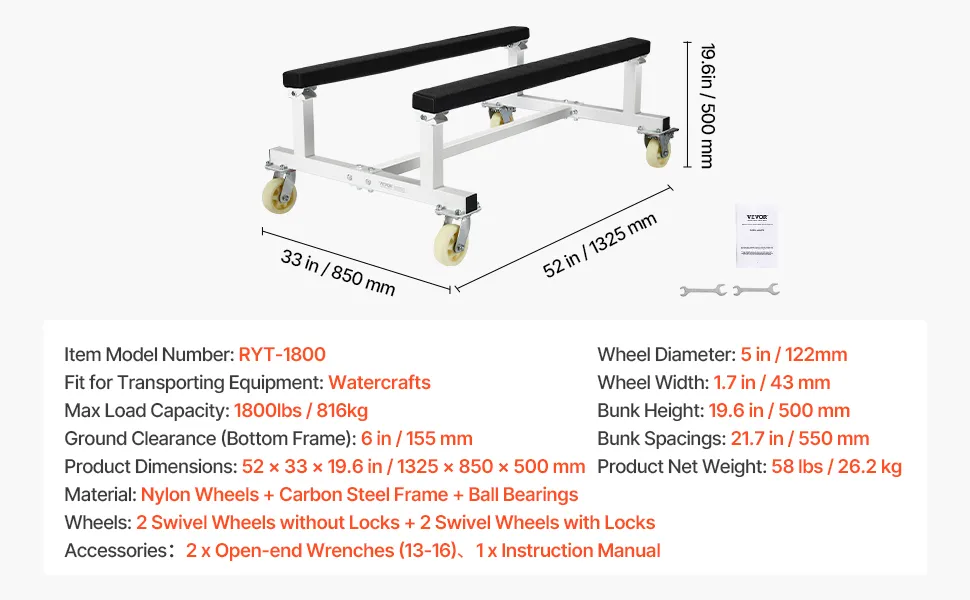Complete Accessories: Our watercraft dolly stand comes with all necessary installation accessories and detailed instructions for quick assembly. After disassembly, the cart is compact and space-saving, significantly reducing storage costs.