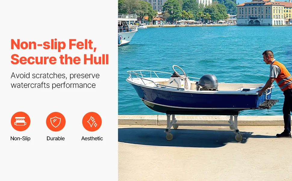 Bunk Tube Edge Wrapping: The soft felt fully covers the bunk tubes, effectively avoiding scratches on the boat and providing extra friction to avoid slipping. The felt also adds an aesthetic touch to the jet ski dolly cart's appearance.