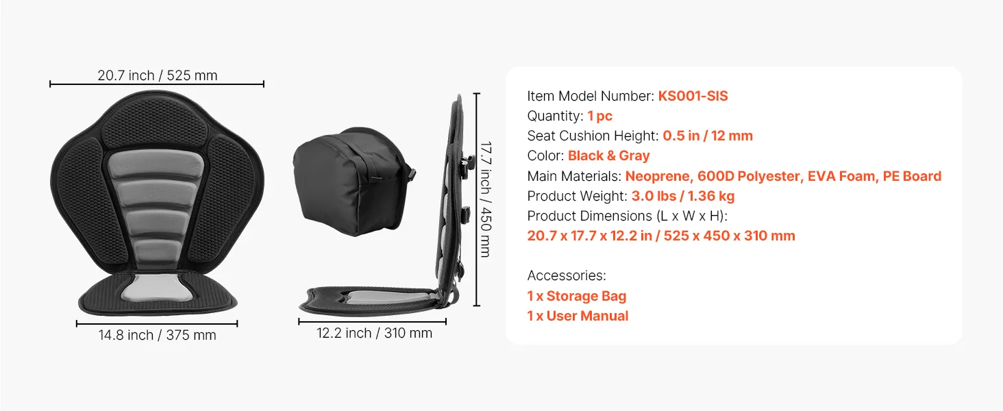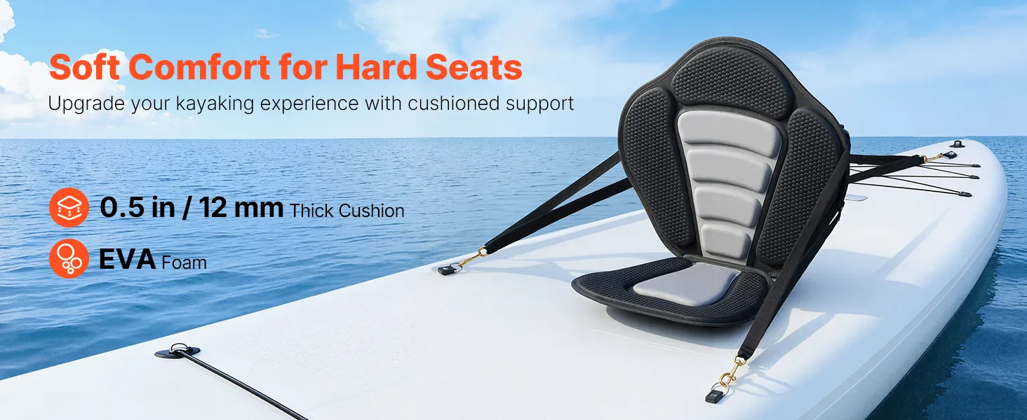 VEVOR Kayak Seat, 1 Pack 12 mm Thick, Universal Paddle Board Seat with Back Support, Sit-on-Top Soft Padded Cushion with Storage Bag & Adjustable Straps for SUP, Canoe, Fishing Boat, Inflatable Kayak VEVOR Kayak Seat, 1 Pack 12 mm Thick, Universal Paddle Board Seat with Back Support, Sit-on-Top Soft Padded Cushion with Storage Bag & Adjustable Straps for SUP, Canoe, Fishing Boat, Inflatable Kayak