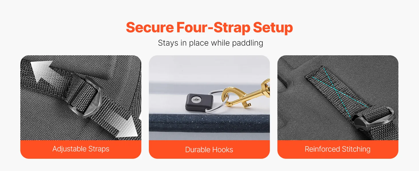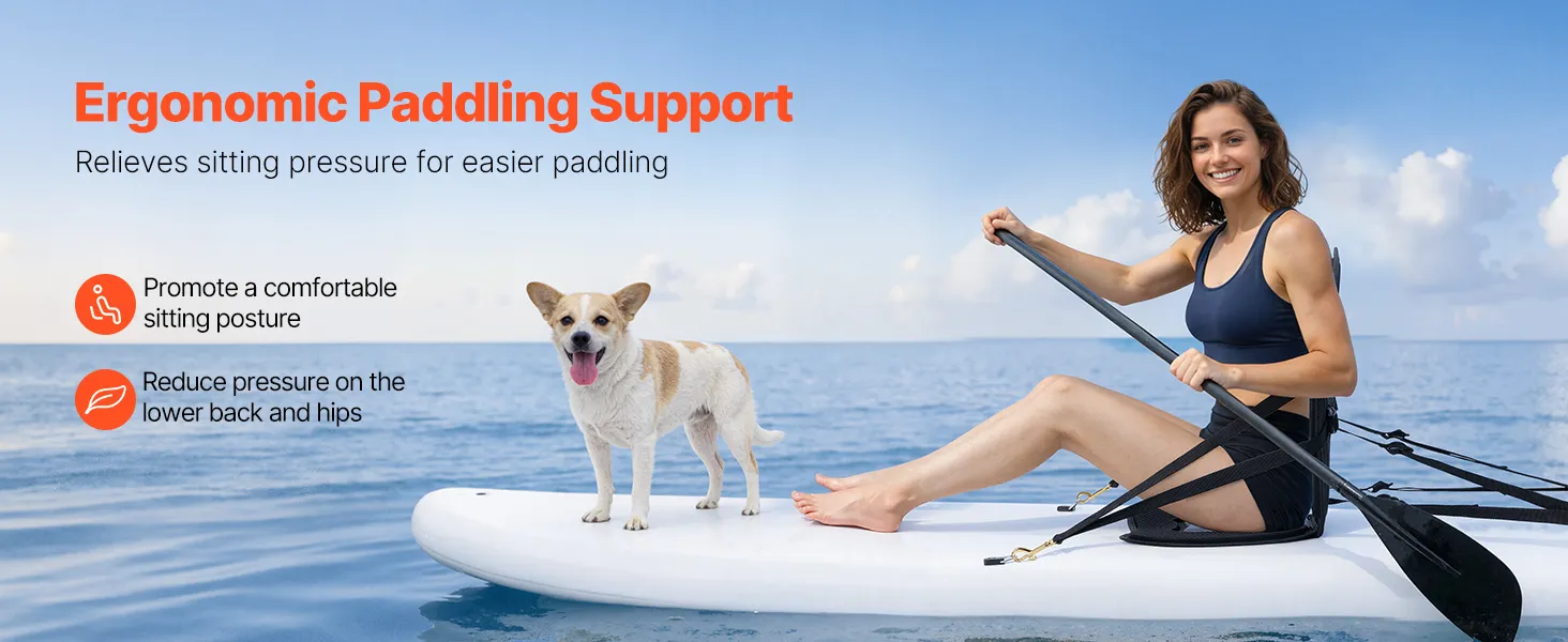 Featuring cushioned fabric and an ergonomic design for the hips and back, this paddle board seat specifically relieves pressure on the tailbone and lower back. It provides just the right amount of support to maintain a seated posture, making extended water activities a true pleasure.