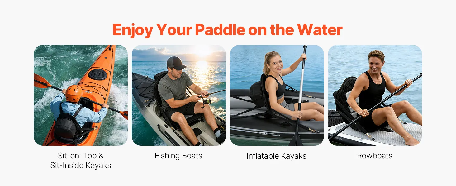 Our seat for kayak is suitable for sit-on-top kayaks, inflatable kayaks, SUP boards, and small boats. Ideal for serious water sports enthusiasts, family recreation, and casual cruising, it can be easily installed and detached again and again.