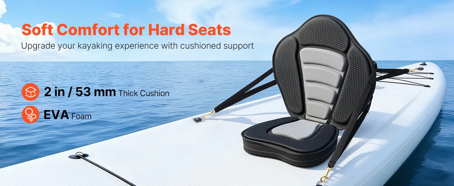 Soft & Comfortable: Our kayak seat features a 2 in cushion filled with high-elasticity EVA foam. It transforms hard kayak seats into soft, comfortable seating, which helps maintain a good posture and reduces fatigue during extended paddling trips