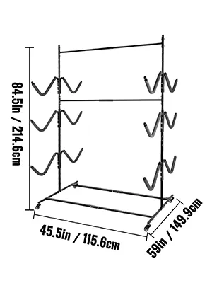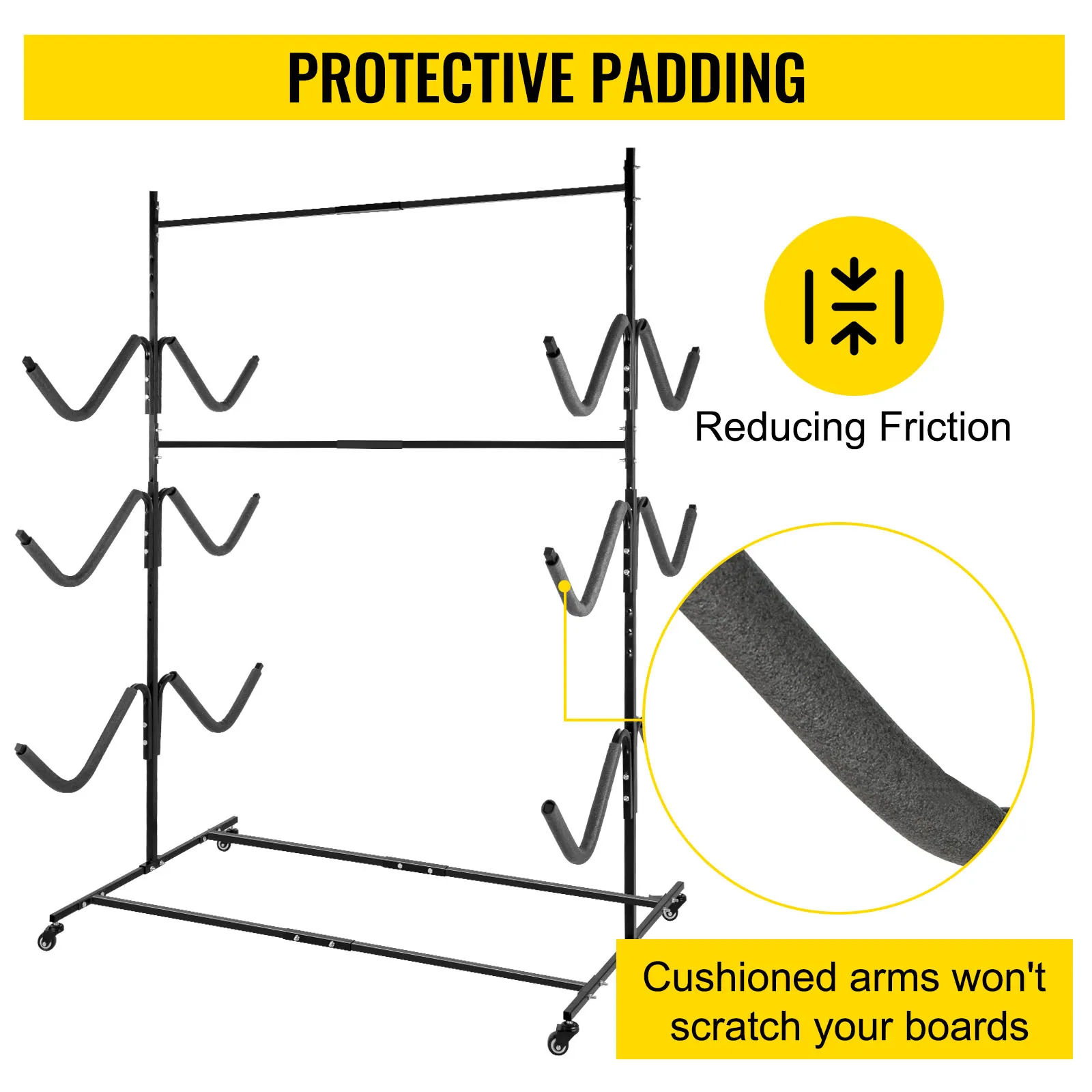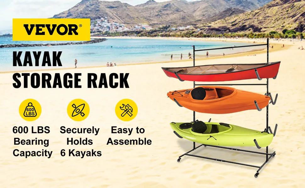 6 Kayaks Storage Rack: There are three levels of this kayak rack, which can be used both front and rear. A total of six storage spaces allow 6 items to be accommodated. Each level has a bearing capacity of 100 pounds, totaling 600 lbs.