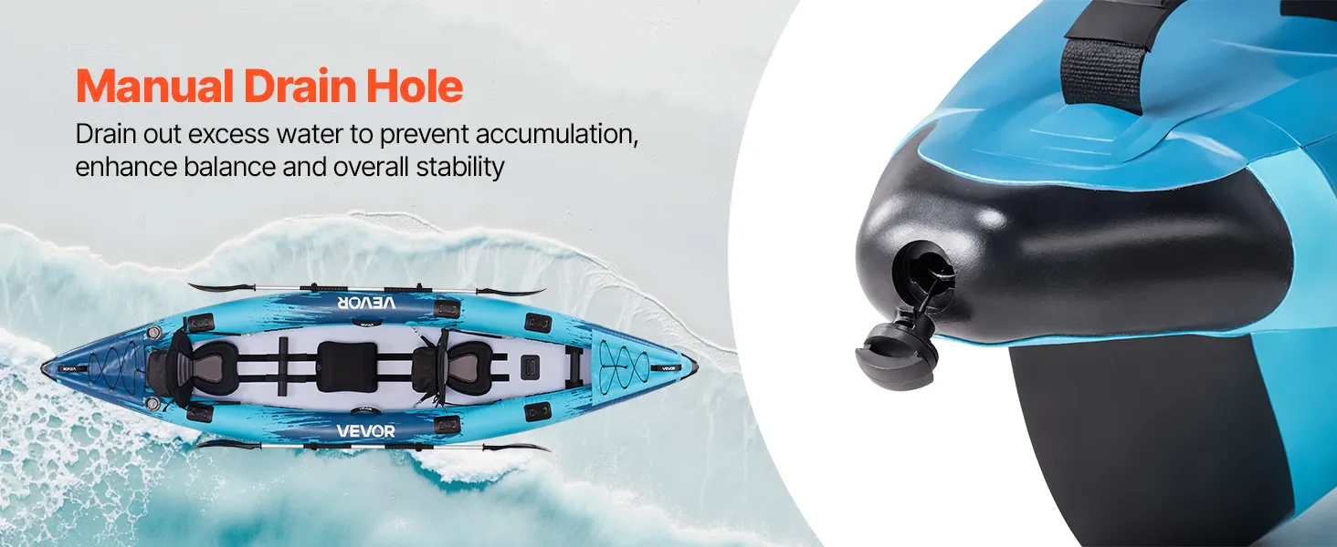 The manual drain holes efficiently drain out excess water, preventing leakage and helping avoid balance issues caused by water accumulation. Enhance overall stability for a safer, smoother paddling experience.