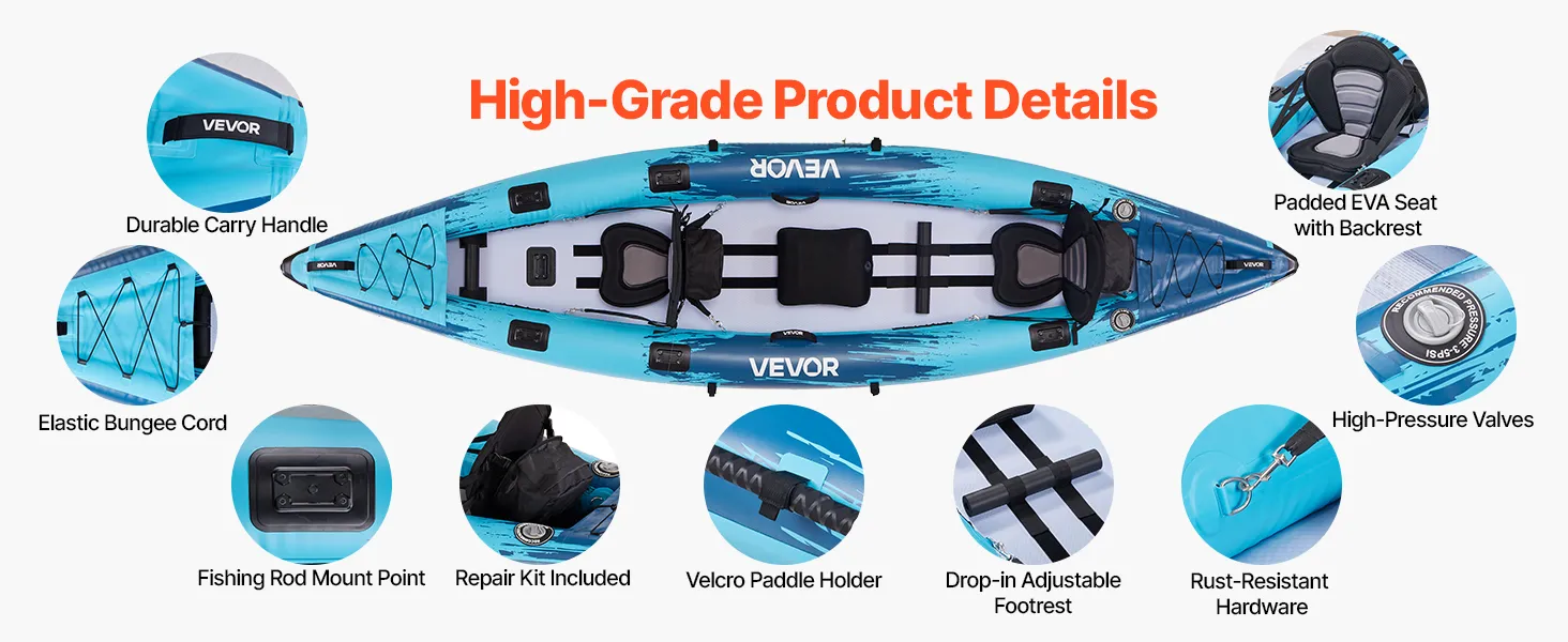 Every detail of this inflatable kayak is designed to enhance your paddling experience — making each journey safer, easier, and more enjoyable. Puncture-resistant and adventure-ready, this recreational kayak lets you enjoy endless fun on the water.