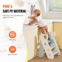 The VEVOR Toddler Step Stool has an adjustable design. You can easily convert it from a 3-step to a 2-step stool. This versatility makes it suitable for various tasks. The foldable design allows for easy storage. You can fold it flat and store it away when not in use. This feature is especially useful for small spaces. The stool can easily be quickly set up and folded by adults. The lightweight, yet sturdy, material makes it easy to move around. Adjustable height ensures the stool grows with your child as they continue to grow taller. These features include adjustability, which extends usability over time, and a foldable design that also makes this stool portable for travel. Therefore, your kid has a familiar tool for independence wherever they go.