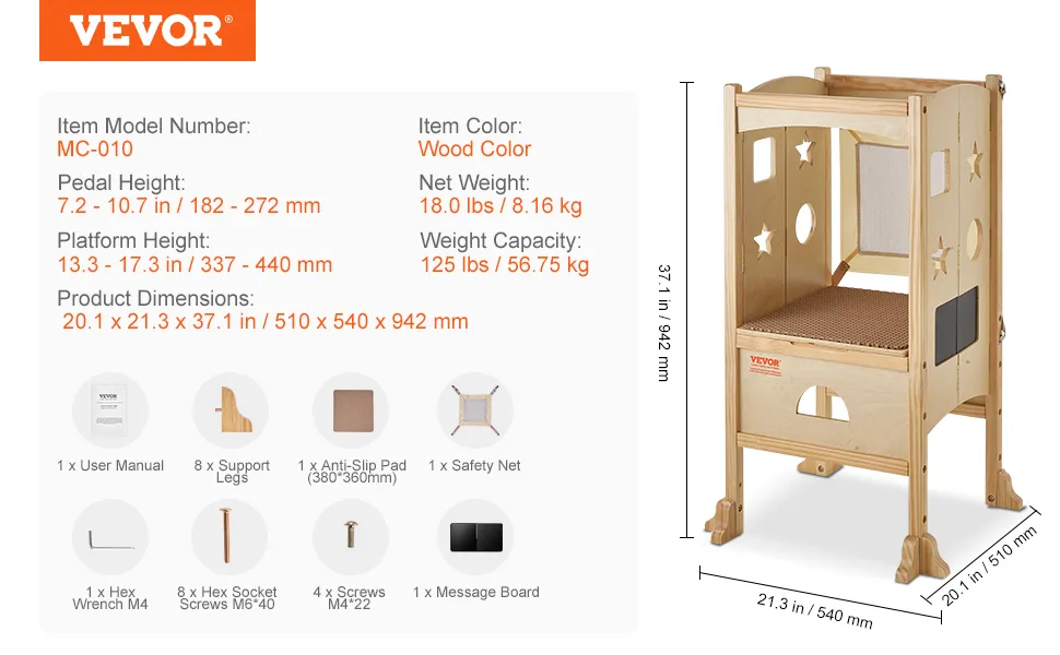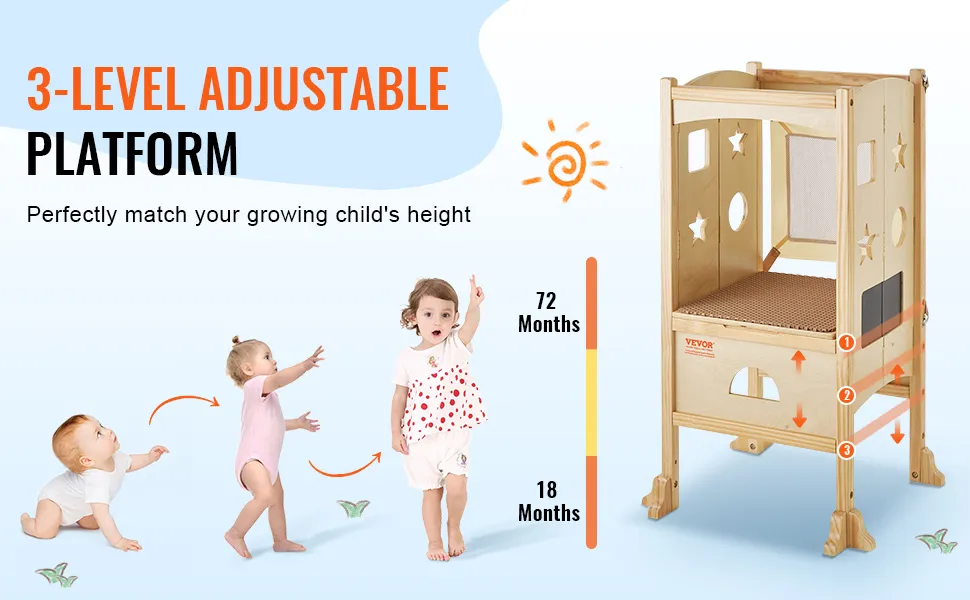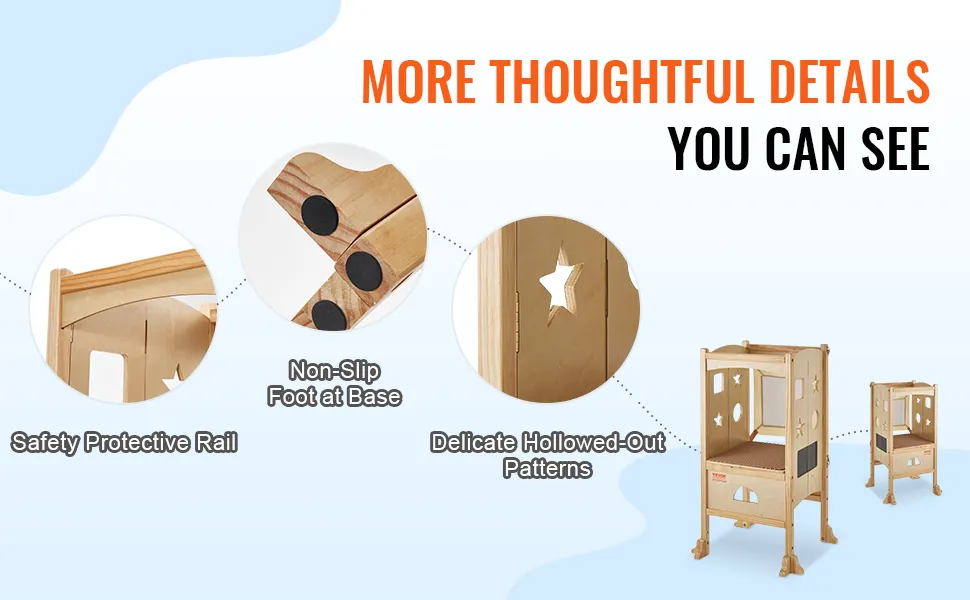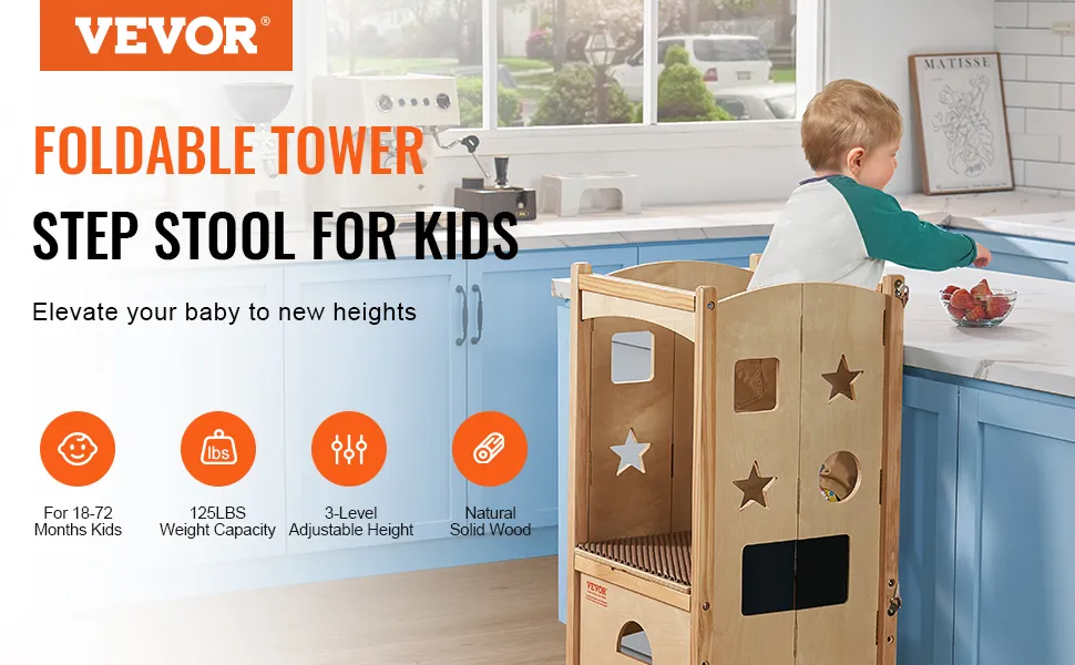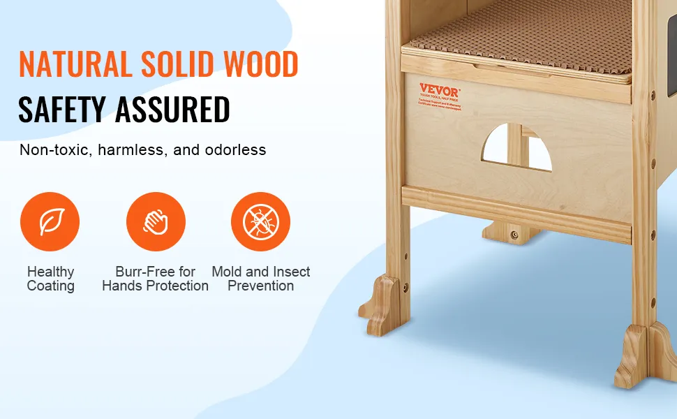 The VEVOR tower step stool is both durable and reliable. It supports up to 125 lbs, making it suitable for toddlers and young children. The wood is strong and long-lasting, so the stool can handle regular use. The solid build also enhances the appearance of the stools, fitting nicely into any home environment. The stools' durability ensures years of use, offering excellent value for your investment.