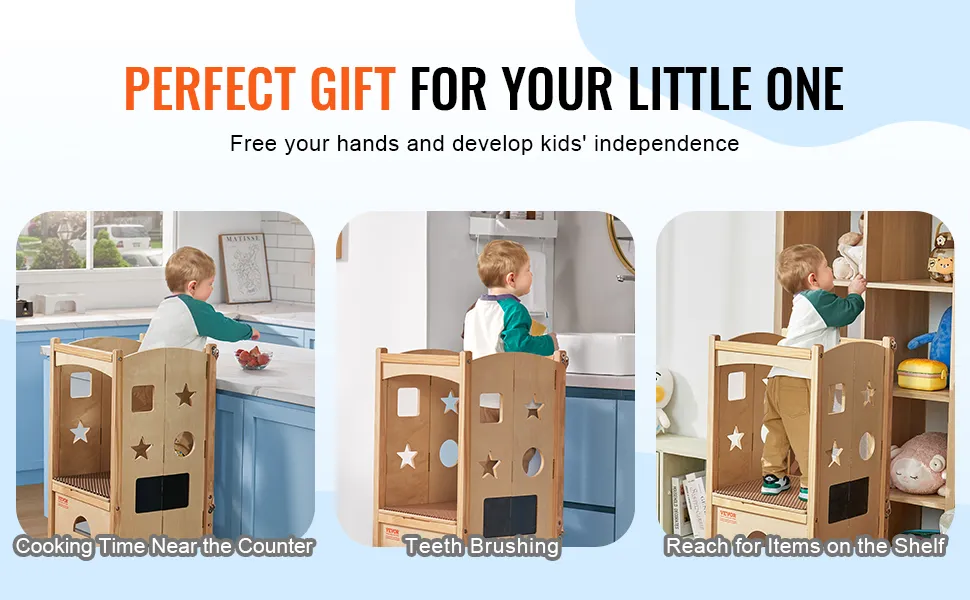It is designed to enhance toddler independence. They can participate in activities that they might not be able to reach otherwise. This independence is essential for their development and growth because the stool encourages them to engage in tasks such as cooking, cleaning, and other household chores. By promoting independence, this stool helps build your child's confidence and skills.