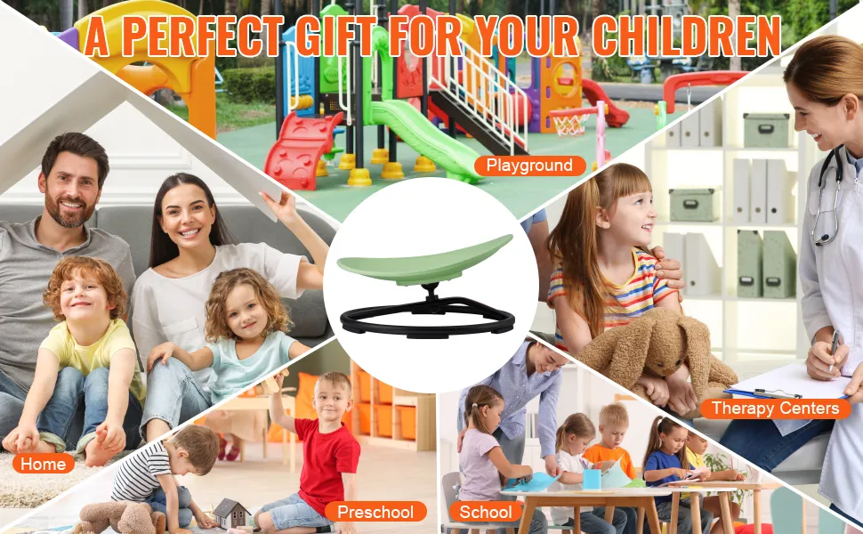 Secure Materials: We prioritize security with eco-friendly PP material, molded in one piece. The edges are carefully polished for smoothness, preventing injuries. The recessed sensory seat provides comfort, and the thickened edges offer a secure grip for kids while spinning.