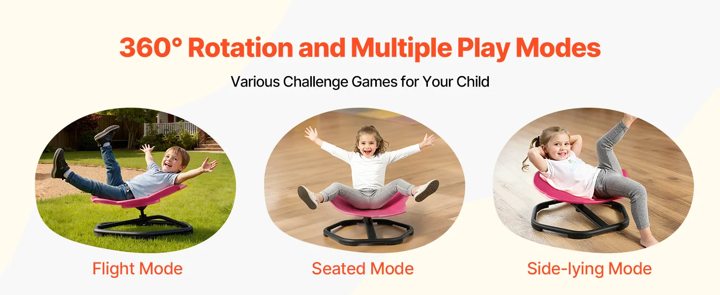 With 360° spinning and multiple play options, kids can sit, lie down, spin the sensory spinning chair, and create their own games. Parents can also join in for fun, interactive play, making it a great family toy.
