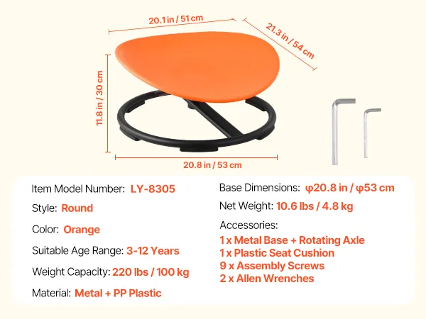 Stable & Sturdy Structure: The sensory spinning chair features a 20.8 in/53 cm metal base and thick seat that ensure stability, supporting up to 220 lbs/100 kg. The triangular base and ball bearings allow smooth spinning, while the anti-slip design keeps the chair stable