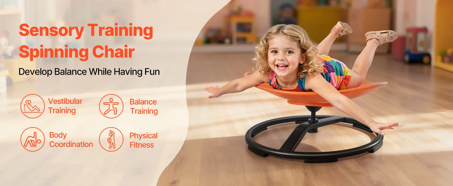 This kids swivel chair stimulates the vestibular system through spinning, helping kids strengthen their grip and core muscles, improving coordination, balance, and brain development.