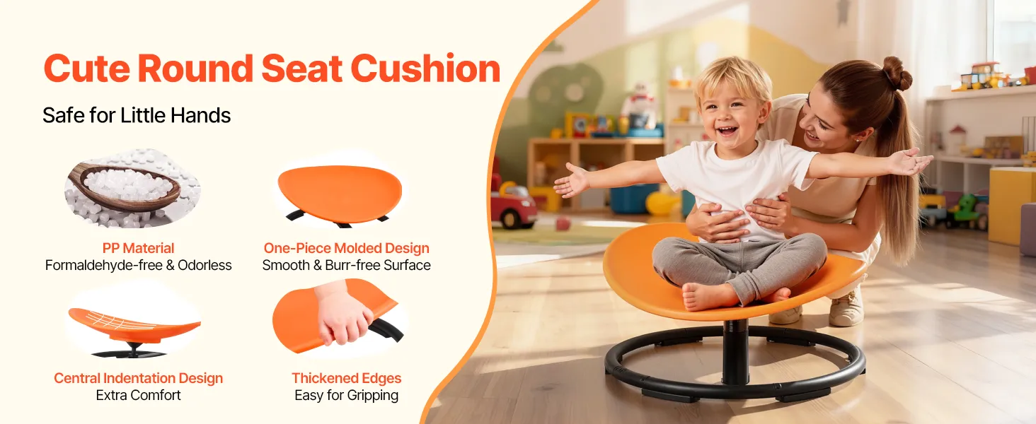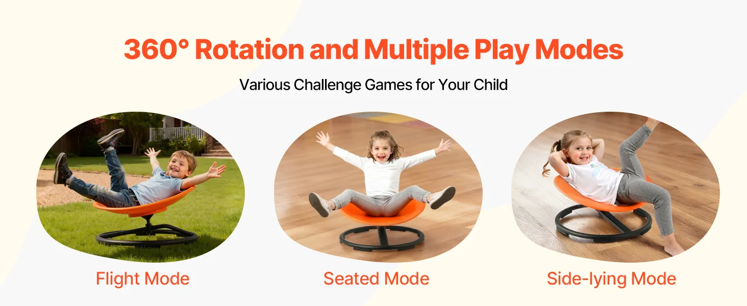 With 360° spinning and multiple play options, kids can sit, lie down, spin the sensory spinning chair, and create their own games. Parents can also join in for fun, interactive play, making it a great family toy.