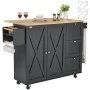 VEVOR Kitchen Island Cart, 56" Wood Top Mobile Carts with Storage Cabinet, Rolling Table with Drop Leaf, Spice Rack, Towel Bar, Adjustable Shelf, Drawer, and Hooks, Portable Islands on Wheels, Black VEVOR Kitchen Island Cart, 56" Wood Top Mobile Carts with Storage Cabinet, Rolling Table with Drop Leaf, Spice Rack, Towel Bar, Adjustable Shelf, Drawer, and Hooks, Portable Islands on Wheels, Black