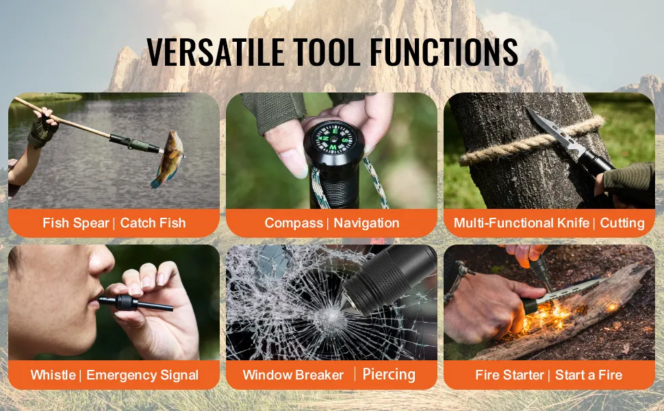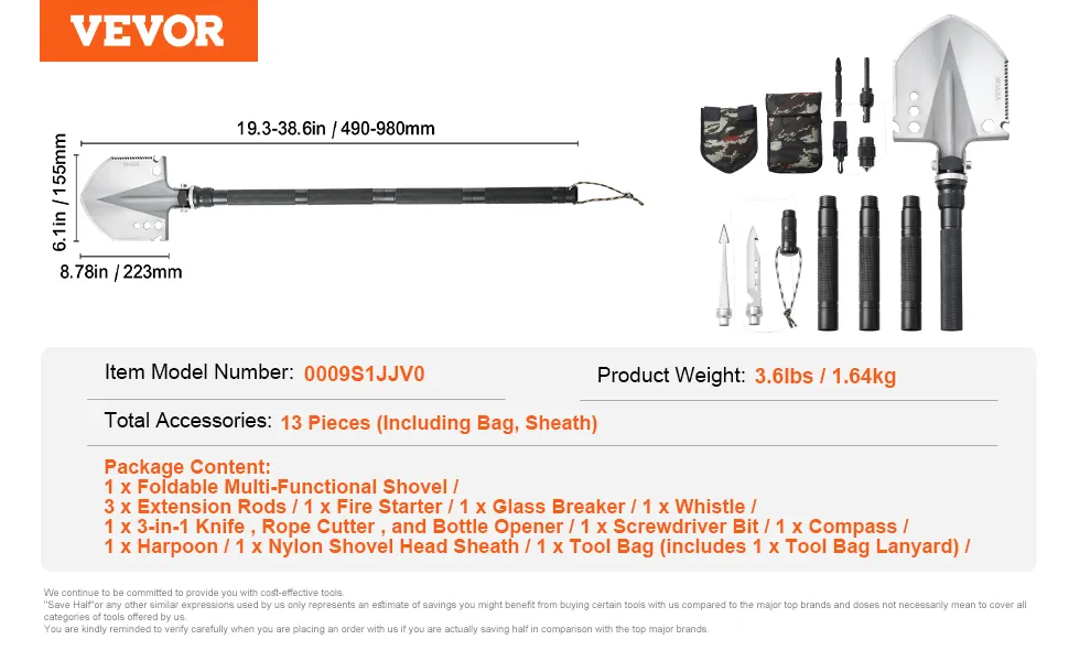 Our camping shovel folding multitool is specially designed for outdoor enthusiasts. This durable and practical tool set is ideal for outdoor survival, hiking, camping, and adventure.