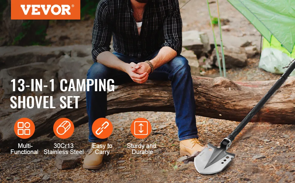 Durable & Long-Lasting: Made from high-strength 30Cr13 stainless steel, this camping shovel folding multitool is wear-resistant, impact-resistant, and resistant to deformation. The specially treated surface enhances rust resistance, ensuring durability.
