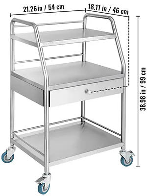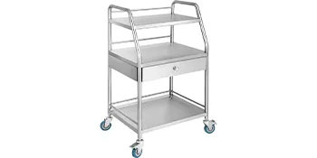 It is perfect for medical and dental settings. It has a stainless steel construction, so it’s easy to sterilize. The cart can store medical supplies, tools, and equipment. This makes it easy to sterilize. Can a person use this tool for laboratories? Yes! You can also use the cart for labs. It provides a dependable and mobile work surface. Lockable wheels ensure that it stay in place during use. Our cart suits various medical applications because of its versatile design and functionality. Whether in a hospital, clinic, or lab, this cart meets your needs.