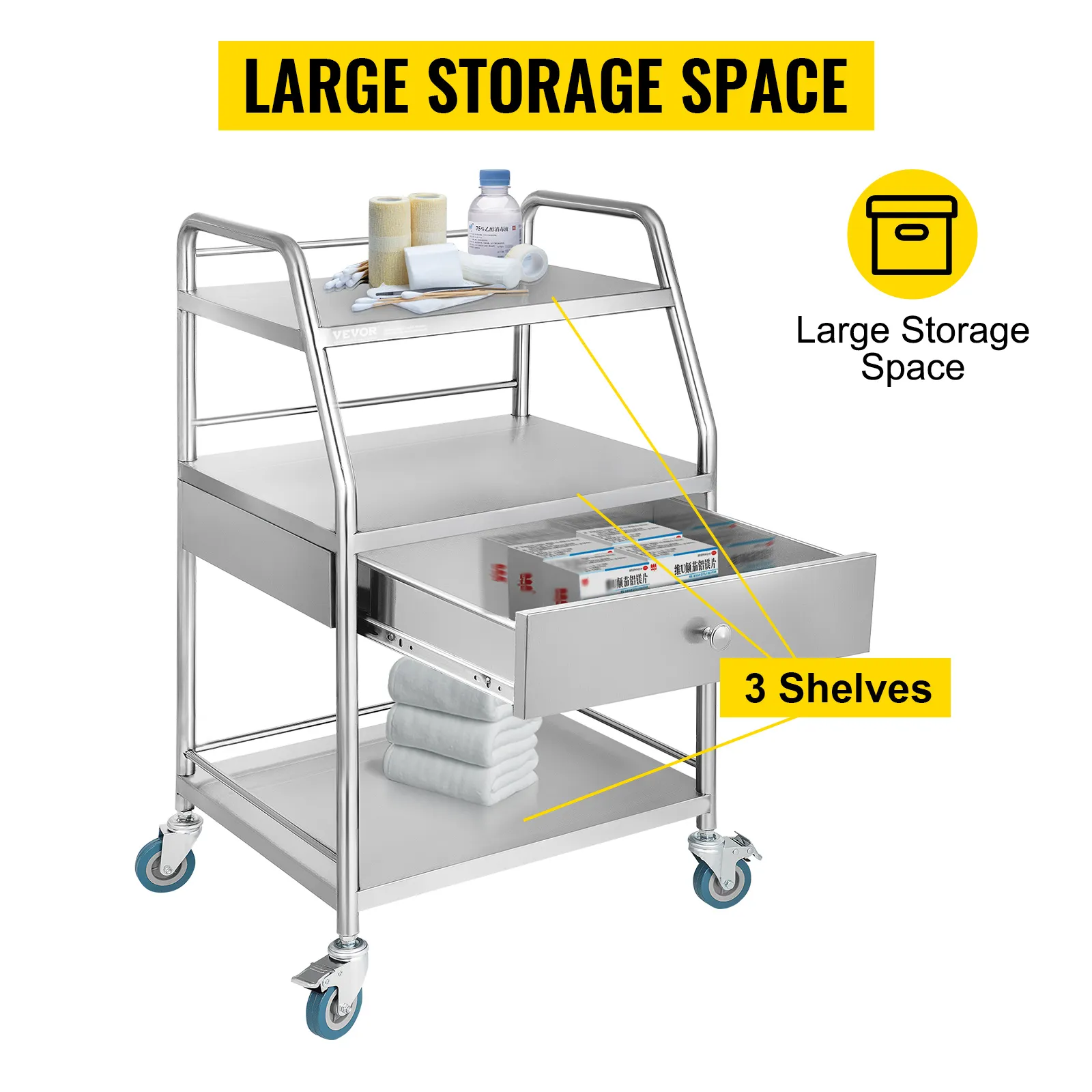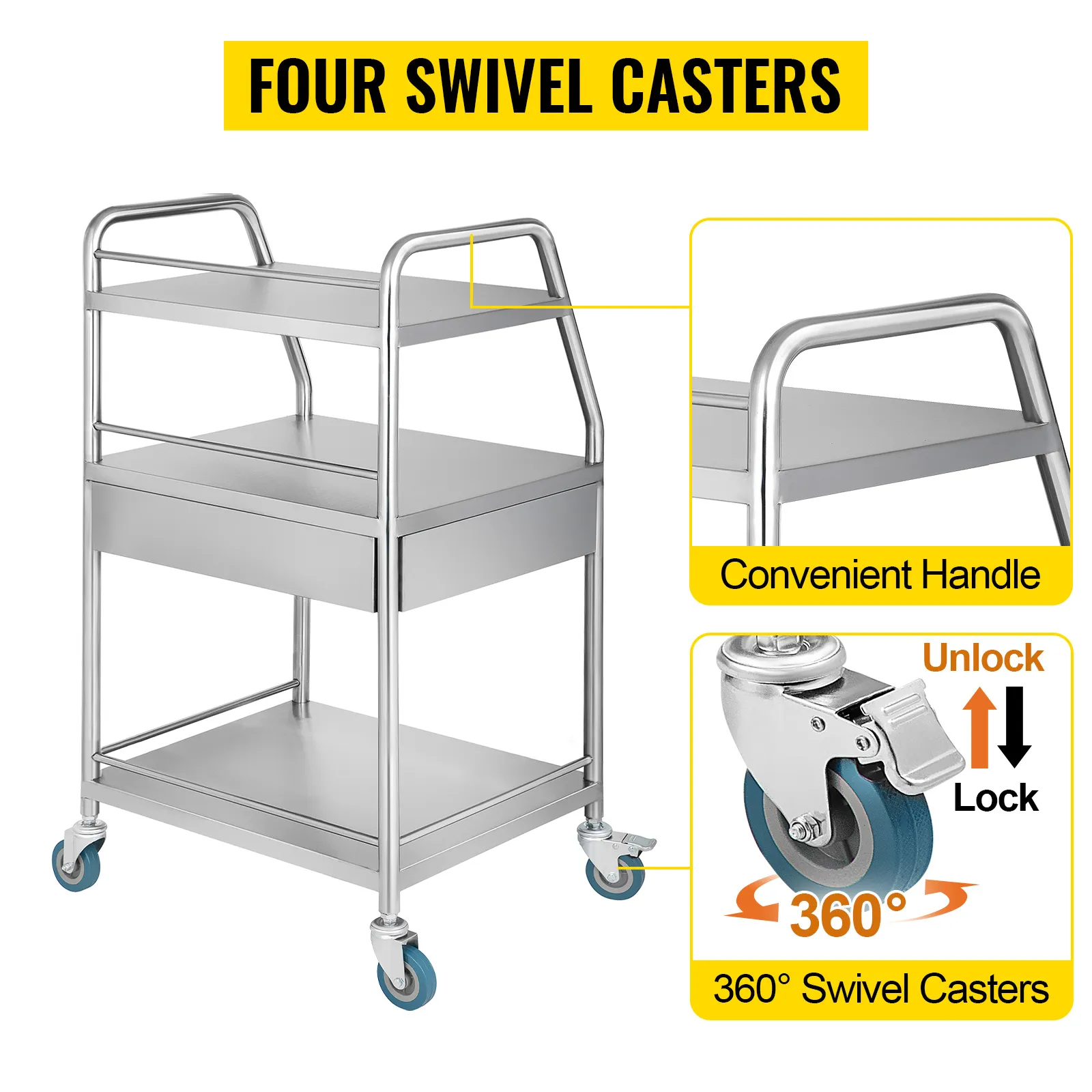Not only does the VEVOR lab serving cart function well, but it also looks great. Its sleek stainless steel design adds a touch of elegance to any setting. The cart's modern look fits well with various decor styles. Although its simple design appeals to quality and style, it is incredibly useful for professional and personal spaces. You get an aesthetically pleasing and highly functional cart that blends form and function.