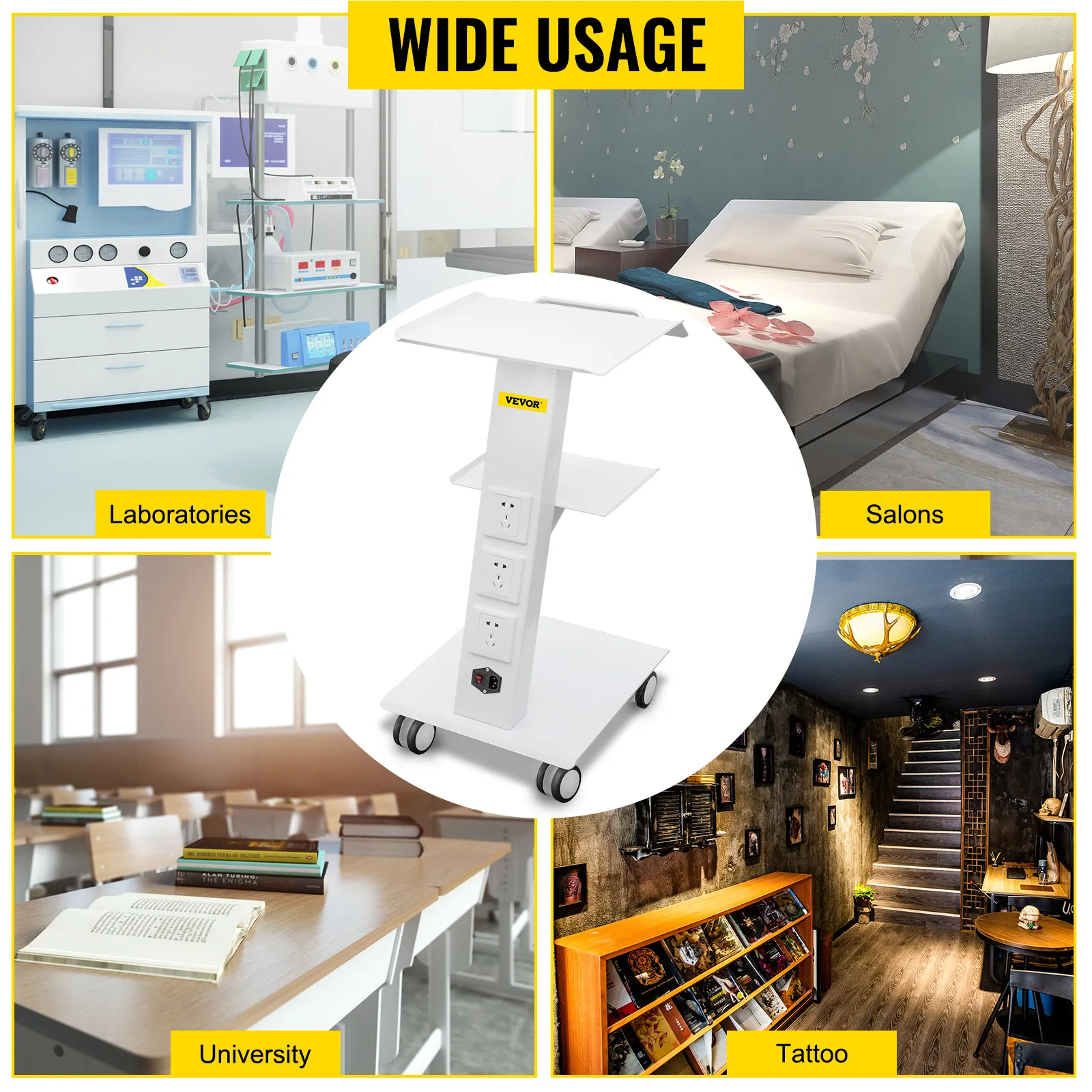 This mobile trolley is made of high-strength steel, with a load capacity of 88lbs. This laboratory rolling cart is designed with three layers, optimizes your storage solutions. The adjustable layer has eight height settings to fit items of different sizes. Four rolling casters (2 lockable) provide effortless and smooth mobility. Several devices can be charged with the built-in socket. This mobile lab cart is widely used in laboratories, schools, universities, salons, and so on.