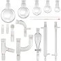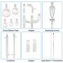 This glassware kit can be used to assemble various distillation apparatuses, fractional distillation apparatuses, and reflux apparatuses.