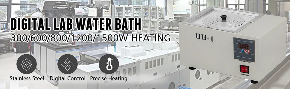 • 【Superb Quality】- Power: 300W; Tank Size: 5.9x5.9x4.3"; Opening: 1; The lab water bath is made of high quality stainless steel, rust & corrosion resistant for longer service time.