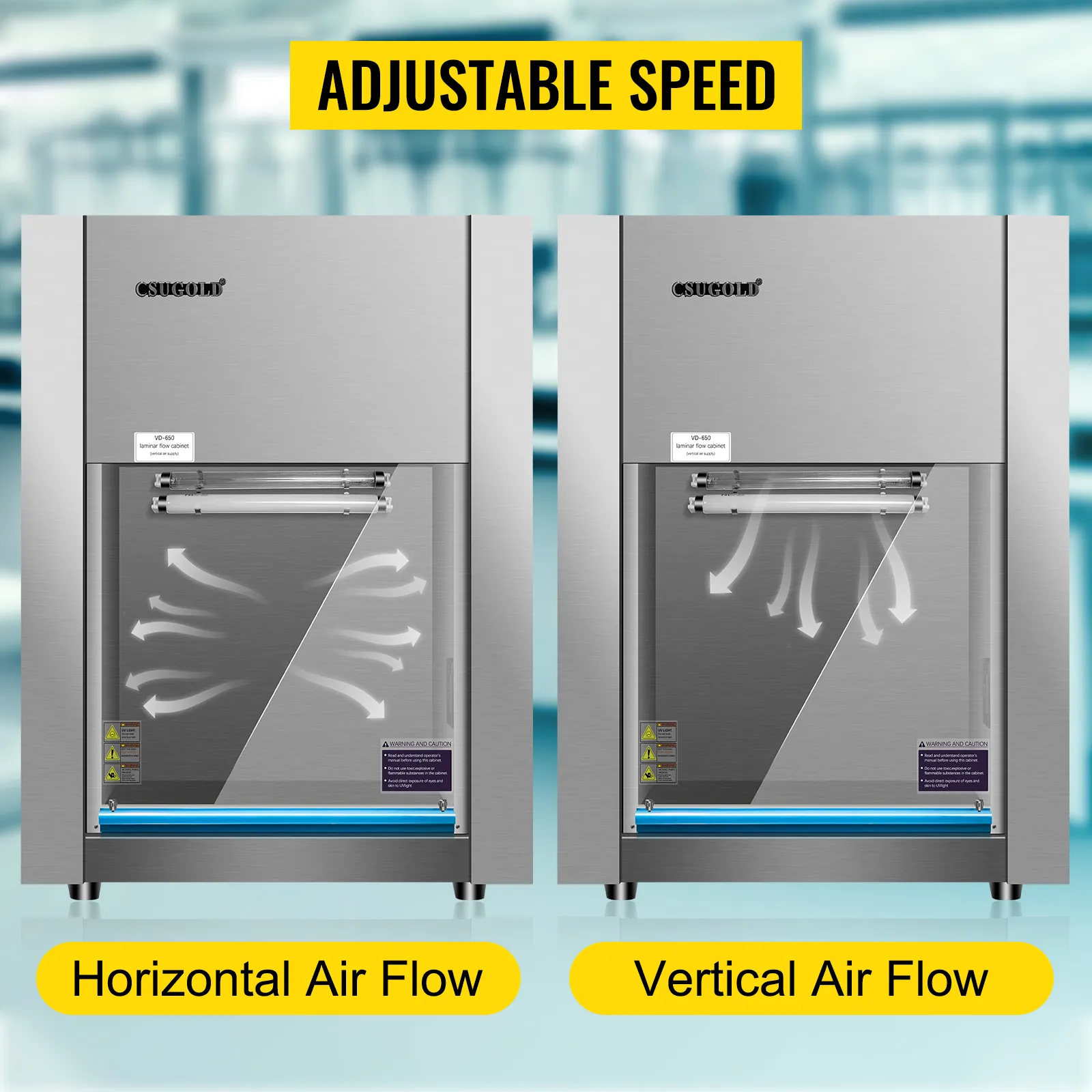 • 【ADJUSTABLE AIR VELOCITY】- The vertical airflow is provided through a centrifugal fan and primary air filter at the top. Air Velocity: 0.25-0.45 m/s; This equipment adopts an adjustable fan to regulate air volume. It will ensure the desired wind speed of the work area.