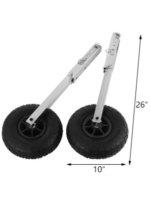 • 【SIMPLE INSTALLATION】 - Attach the two brackets to the transom of your boat, then you are able to use the wheels. When your boat is underway, you can lock the wheels up into a locking position, or they can be removed.