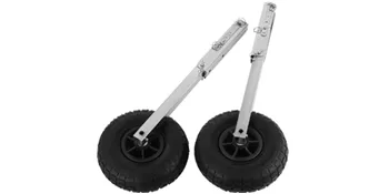 The boat launching wheels kit with 310 lbs capacity comes with stainless steel constructed brackets and polyurethane foaming wheels. Characterized by upper & down position and simple assembly, the wheels are designed for one-person operation in the water, grass, hard or soft sand, and dirt for inflatable boats, mud boats, rowboats, and sailing dinghies.