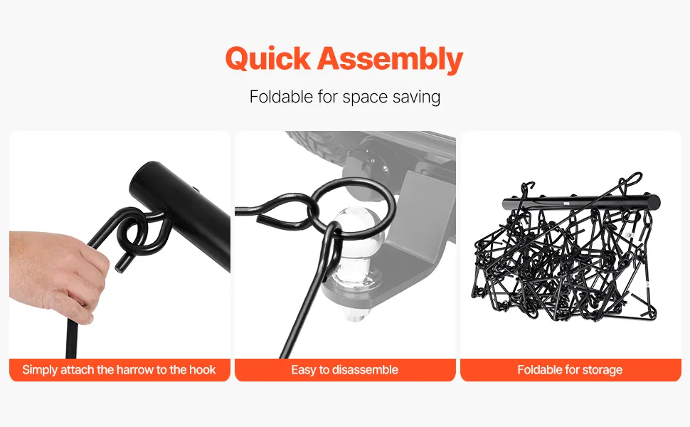 Our drag harrow rake features a quick setup design, allowing you to start work immediately without extra preparation time. After use, it can be easily disassembled and folded for compact storage, saving valuable space.