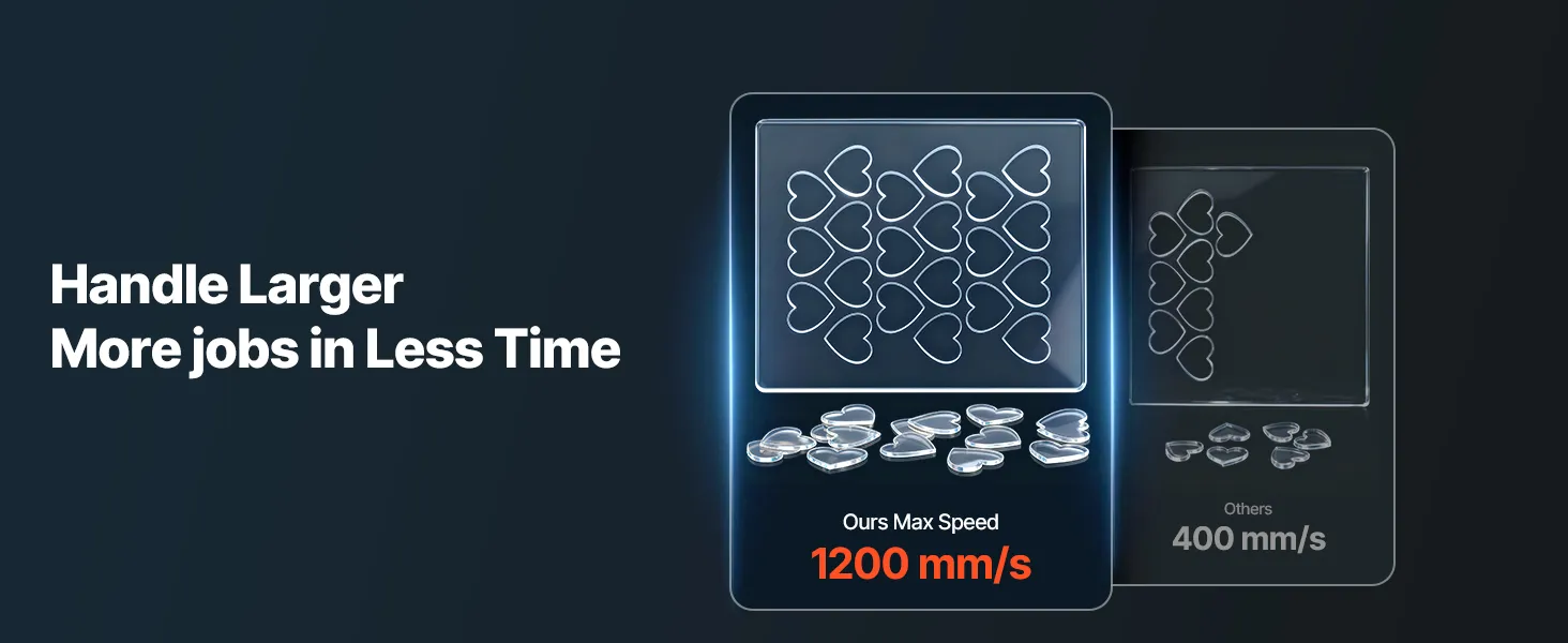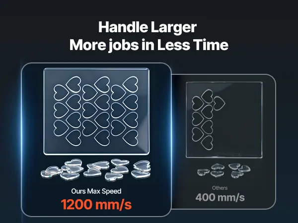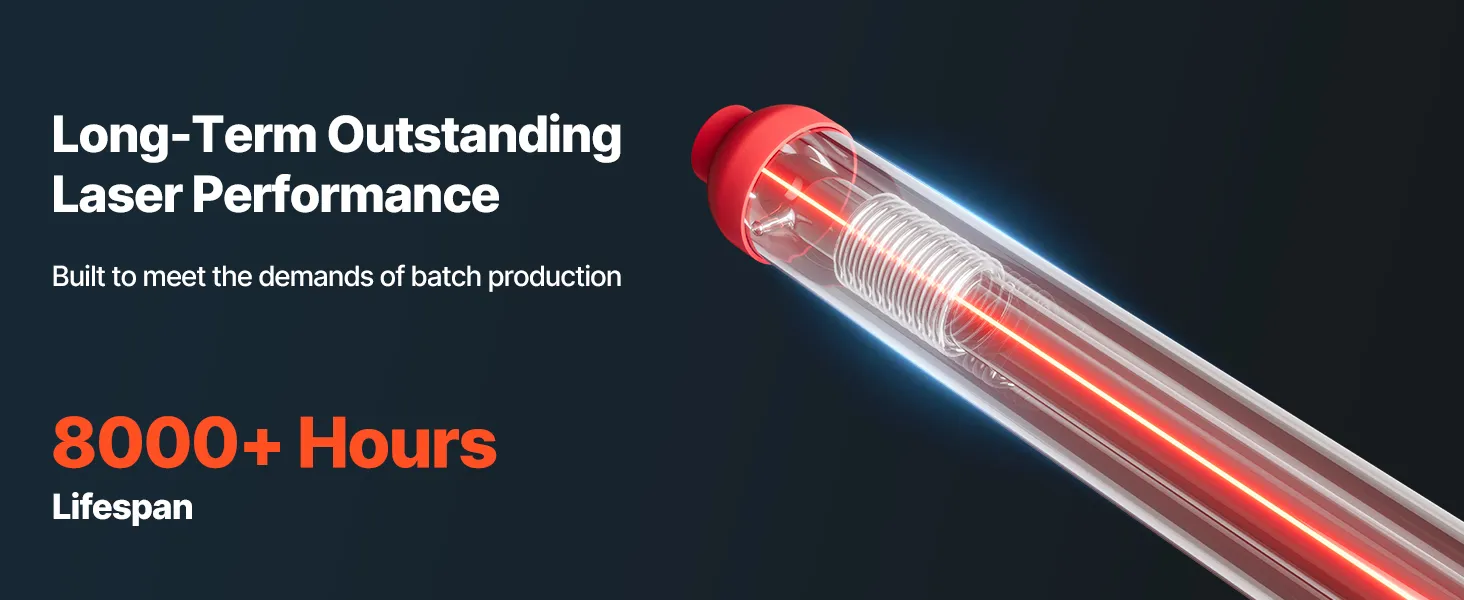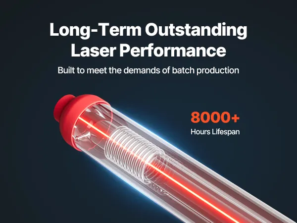 High-Efficiency Engraving & Cutting: This 130W CO2 laser engraver engraves or cuts wood, acrylic, and other non-metal materials with burr-free edges. Recommended for materials under 10 mm, it reaches speeds up to 1200 mm/s. Laser tube life: 8,000+ hours. Note: not for metal engraving, only suitable for coated metals