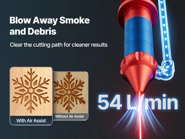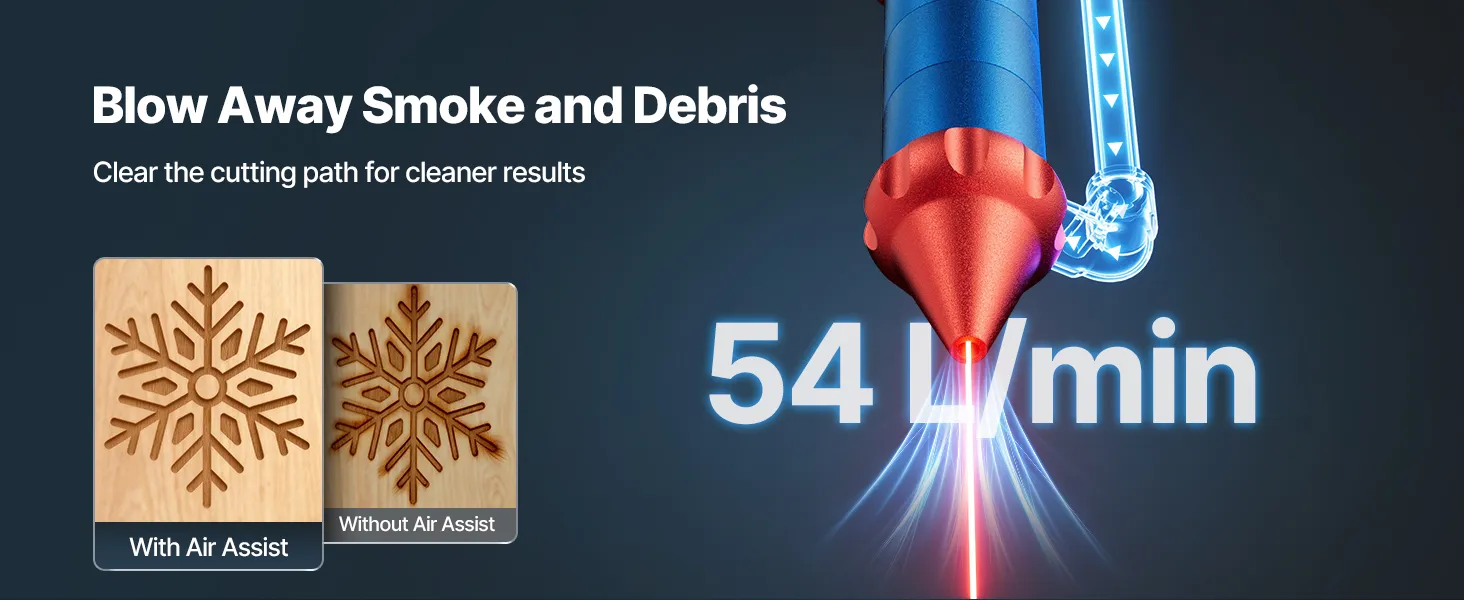 Clean & Reliable Operation: The built-in air-assist system clears dust and smoke, keeping the workspace fresh. The water chiller system, plus multiple security features, ensures consistent performance during long runs while reducing operational risks