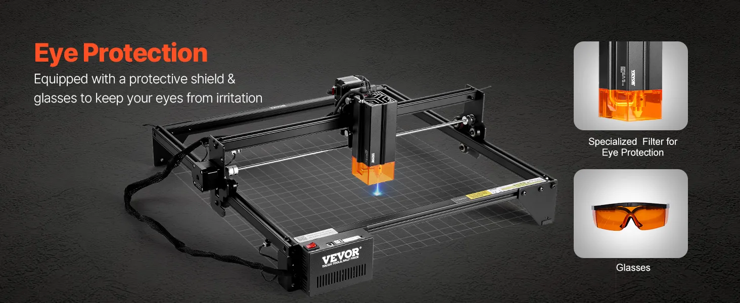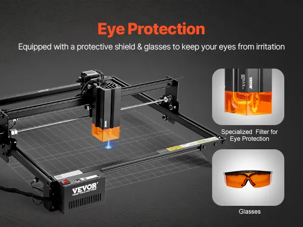 Designed with You in Mind: The filter safeguards your eyes by filtering out 97% of harmful light. The cable management system keeps your workspace organized. It ensures a secure engraving experience