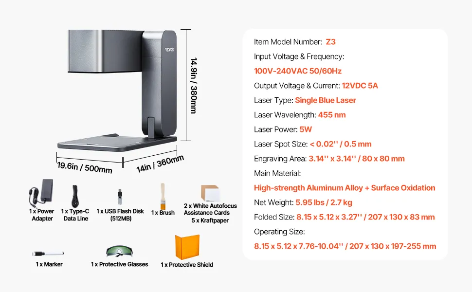 This 5W blue laser engraver delivers 600 mm/s speed and a 3.14'' x 3.14'' engraving area. With one-touch autofocus and a 0.02 in laser spot, it’s great for engraving non-metal materials. Compatible with Android, iOS, Windows, and etc., it supports multiple file formats-ideal for any workplace.