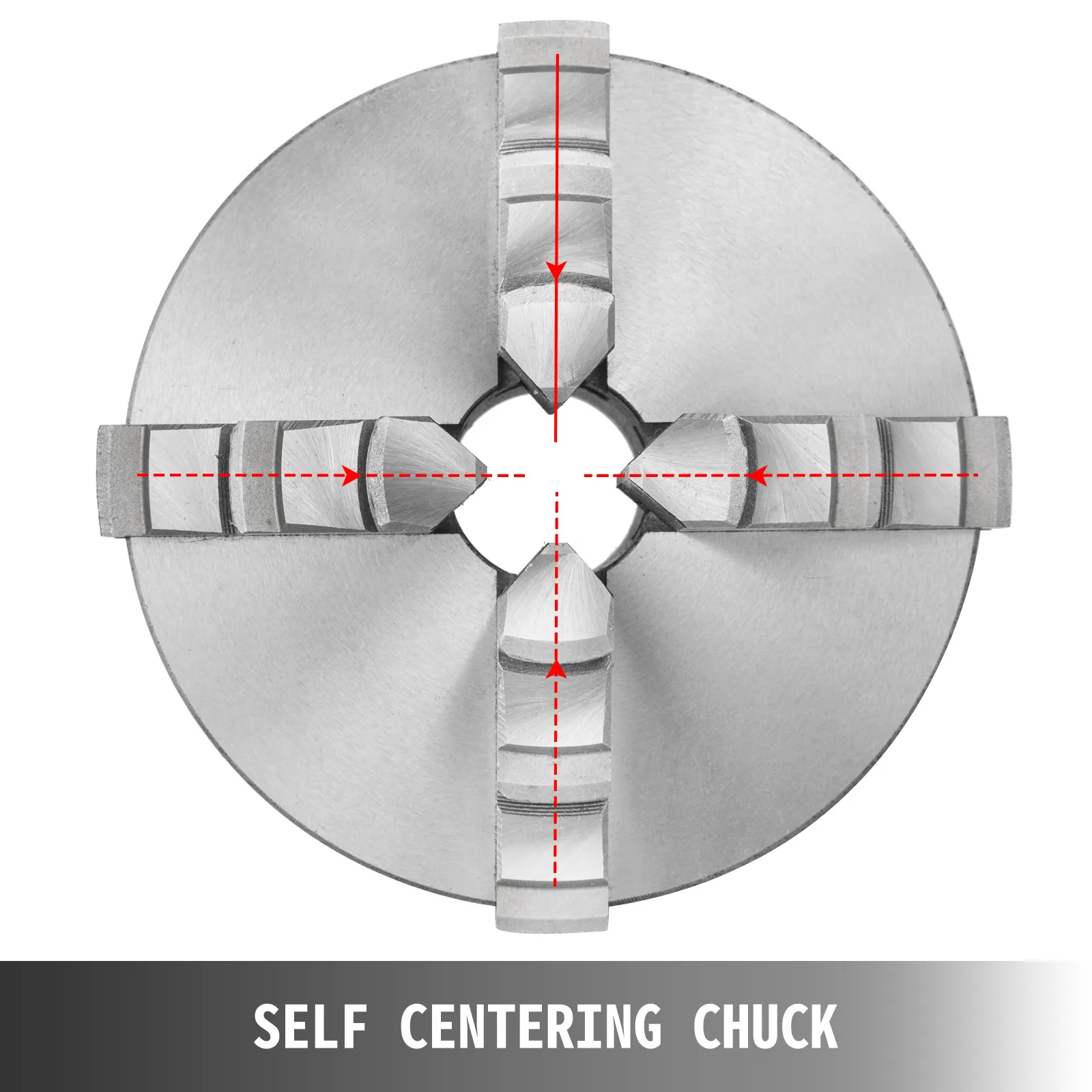 The self-centering lathe chuck is composed of a strong cast iron body and four steel jaws so that it can withstand harsh working environments. It features a wide clamping range and high precision. After fastened by a single T handle, it can handle more materials than a 3-jaw one, in various shapes.