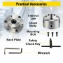 This metal lathe chuck is composed of a chuck body, a security chuck key, an adapter plate, and mounting bolts. All of these parts allow you to install them quickly.