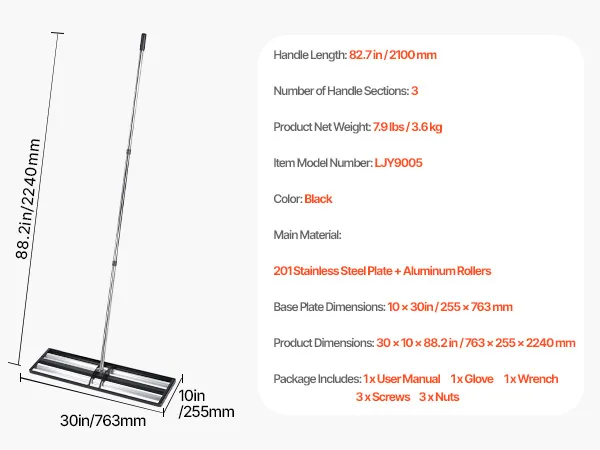 Easy to Assemble: The package comes with an instruction manual and gloves, allowing you to quickly assemble and disassemble the soil leveler. Just align the handle threads, screw in and tighten, connect the base plate and fix it with bolts, and tighten with a wrench. The installation is simple and effortless.