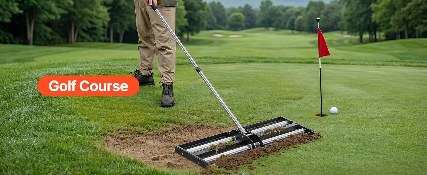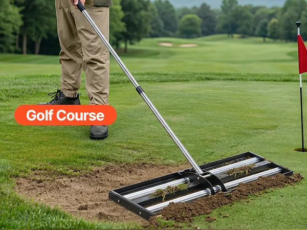 Wide Application: Lawn raking rakes are suitable for various terrains such as lawns, farms, gardens and golf courses, and are used to level sand, soil, compost and moss.