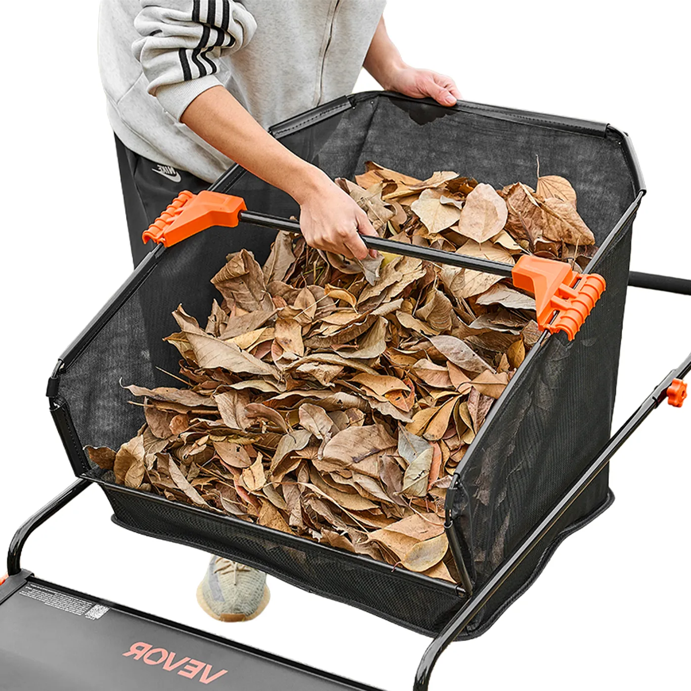 The grass and leaf collector features concentrated V-shaped brush structure that help boost sweeping efficiency while reducing tangling from weeds and pine needles. Less ground friction makes it easy for seniors to push and clean the lawn independently.
